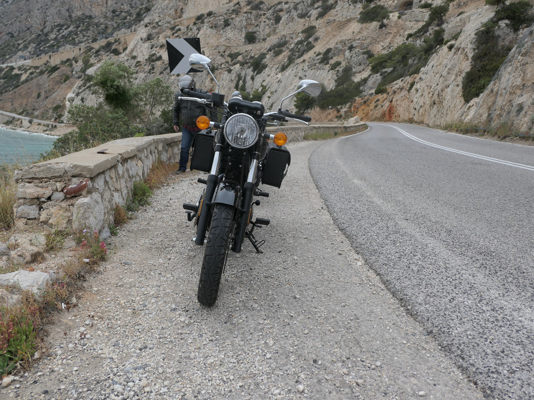 Κάπου μετά την Κακιά Σκάλα ανταλλάξαμε μηχανές με τον Θανάση, σκέφτεται να πάρει το νέο Royal Enfield Classic 350, οπότε το Imperiale ήταν ότι έπρεπε για να δεί αν θα του κάνει το νεο enfield μιας και το στήσιμο και οι επιδόσεις είναι παρόμοιες …