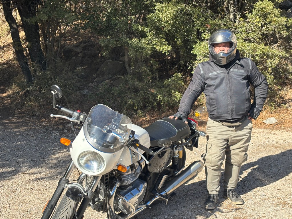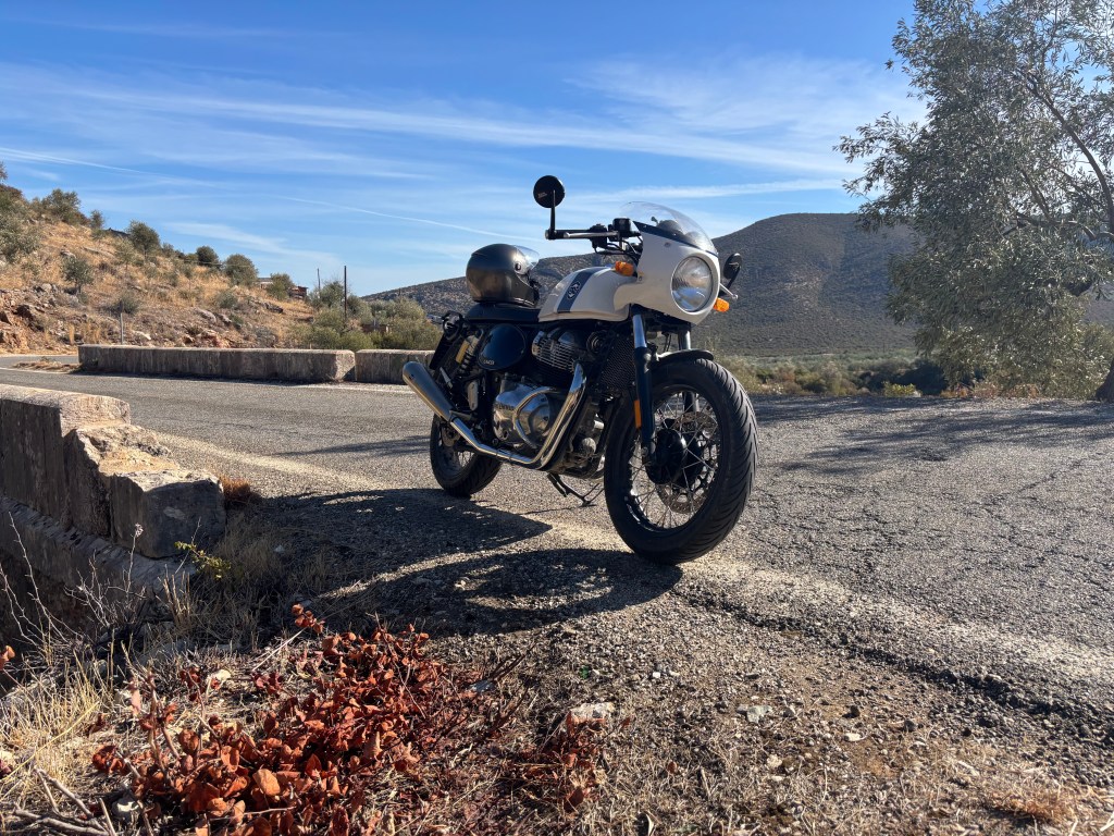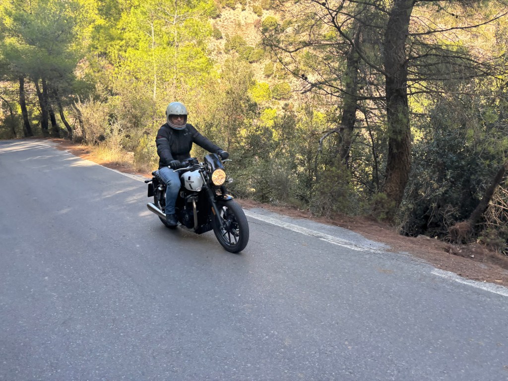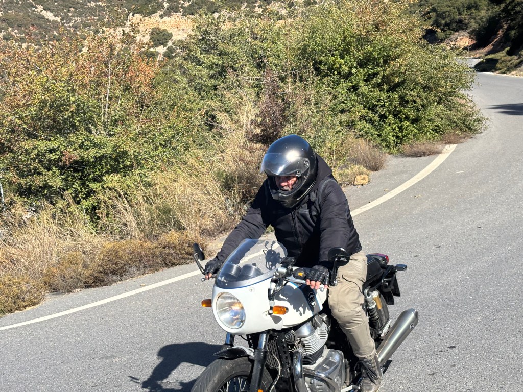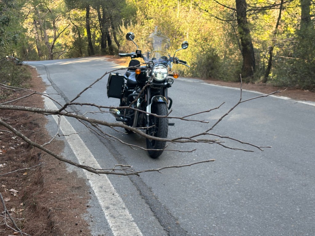 Ξεκίνησα λίγο αγχωμένος, αλλά η Τζό (Royal Enfield Super Meteor 650) με έβαλε σε τάξη. Τα χιλιόμετρα της εθνικής μέχρι το Σπαθοβούνι πέρασαν γρήγορα , Η Τζό τα κατάπινε χωρις πρόβλημα μόνο ο αέρας ήταν λιγο ενοχλητικός, τίποτα άλλο.