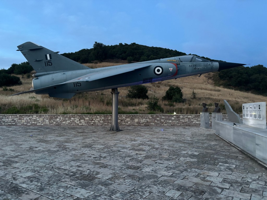 Φτάνουμε στην πλατεία του Θερμού αφου πρώτα κάνουμε μια στάση για φωτογραφίες στο μνημείο πεσόντων αεροπόρων …