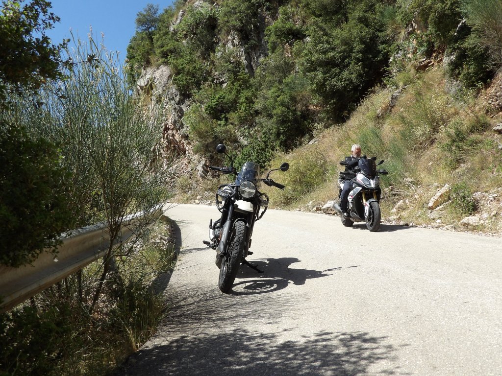 Λίγο πρίν τις Ερυθρές σταμάτησα στην άκρη του δρόμου και ρώτησα τον Κώστα αν θέλει να το δοκιμάσει και σύντομα ο Κώστας είναι μπροστά με το Himalayan και εγώ από πίσω του με το XR